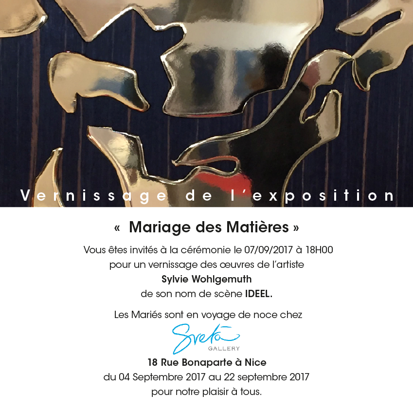 IDEEL expose du 4 au 22 Septembre 2017 chez SVETA GALLERY à Nice.