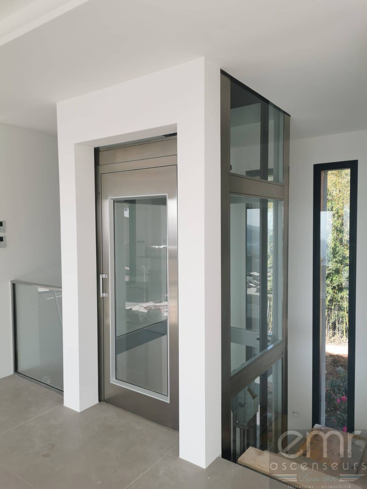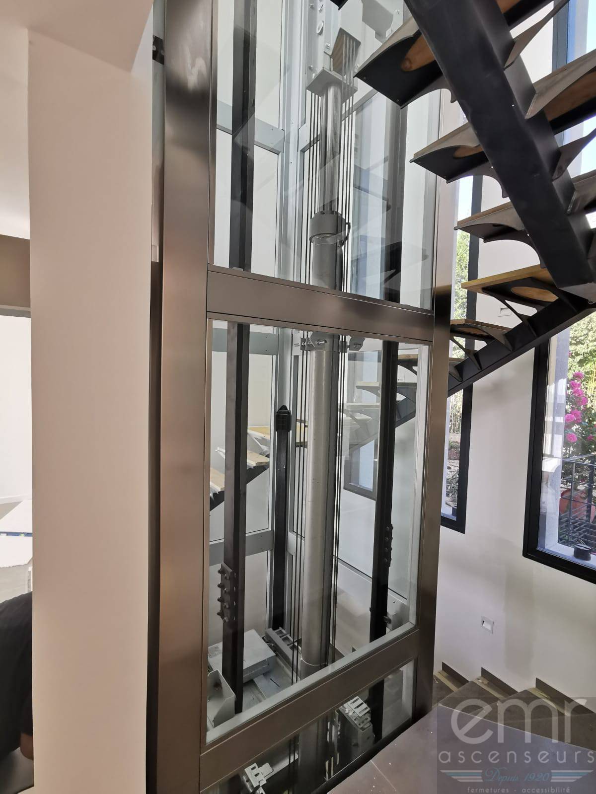 L’Entreprise EMR ASCENSEURS a installé un ascenseur oléodynamique dans une villa à Nice. Il s’agit d’un ascenseur de trois niveaux, simple accès, la cabine a une charge utile de 400 kg / 5 personnes, l’entrainement se fait par un vérin hydraulique latéral mouflé.