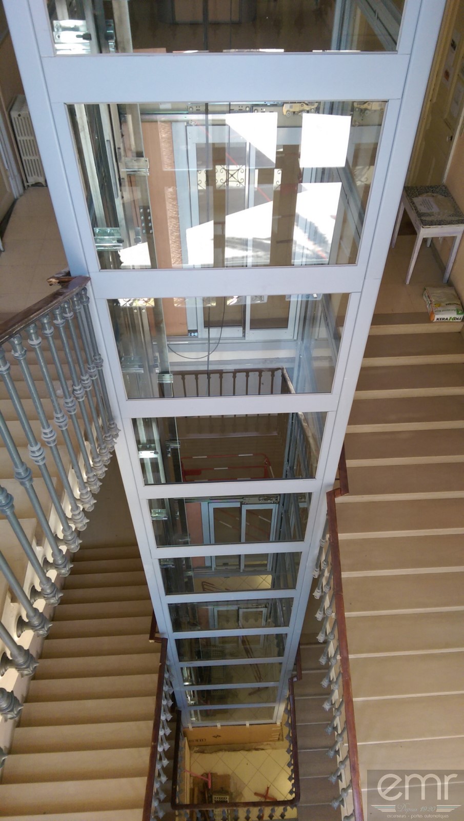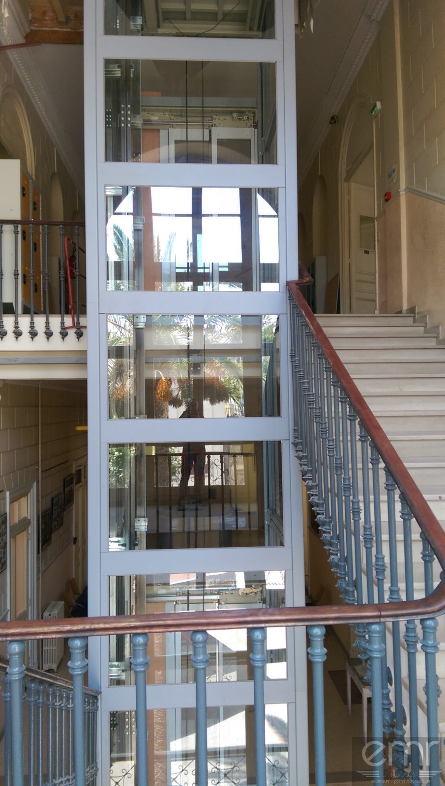 EMR Ascenseurs a crée pour l'Institution Stanislas au 25 av Emile Bieckert à Nice, un ascenseur vitré dans une cage d'escalier existante.