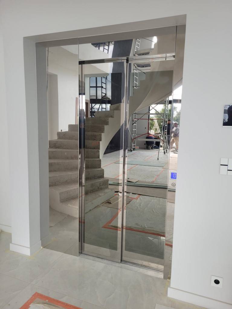 - Portes palières automatiques à 2 vantaux VITRÉS « STOPSOL GRIS »