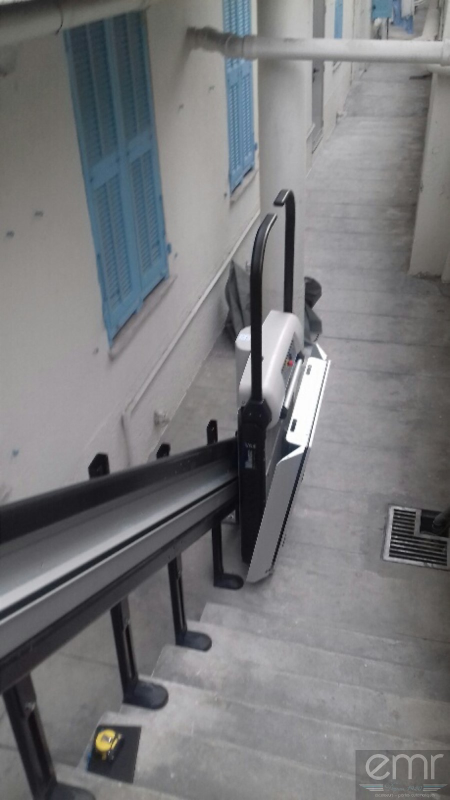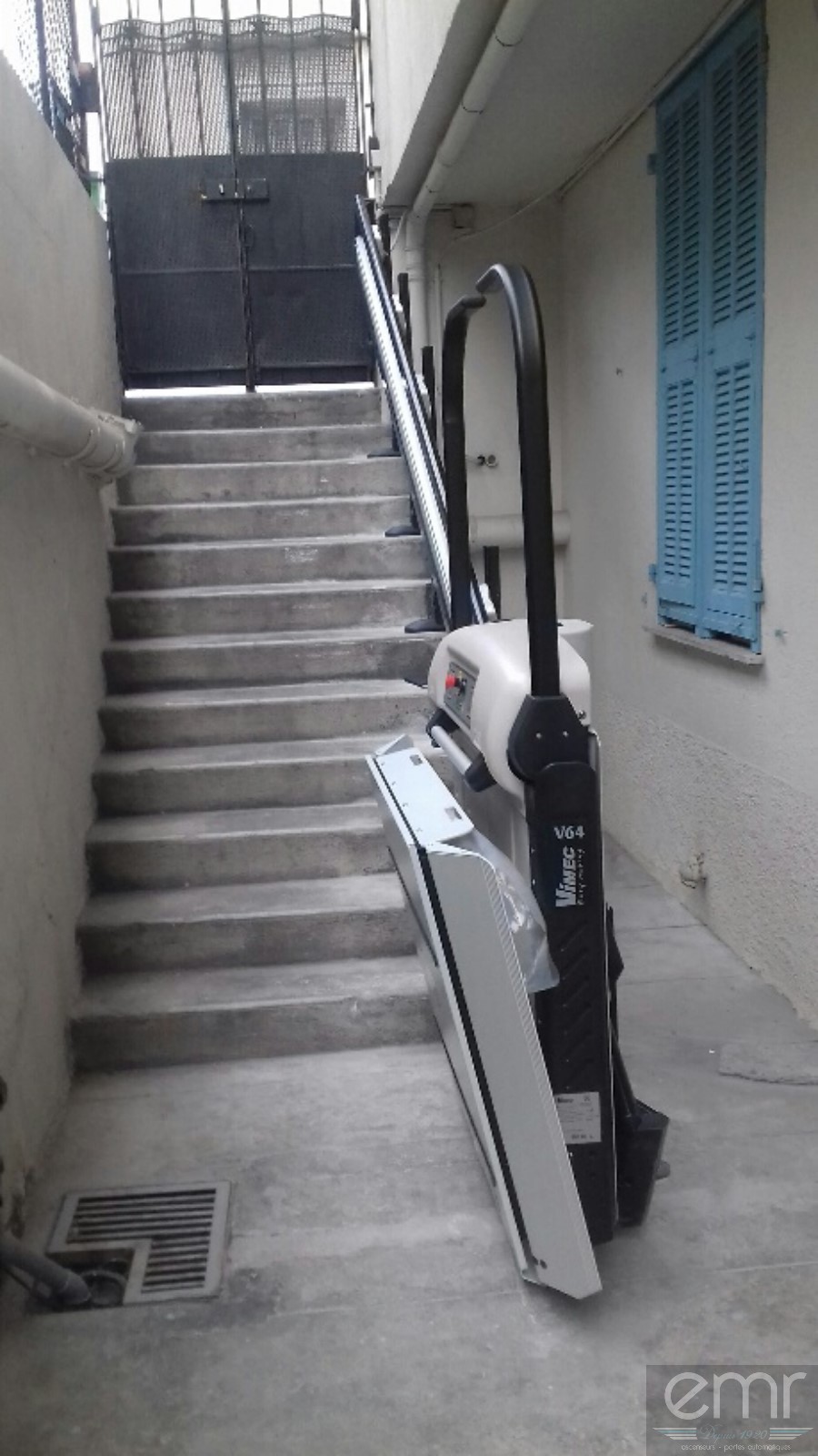 EMR Accessibilité a installé sur la promenade des Anglais à Nice, une plateforme élévatrice extérieure afin de rendre accessible une cour avec un escalier d'une dizaine de marches !