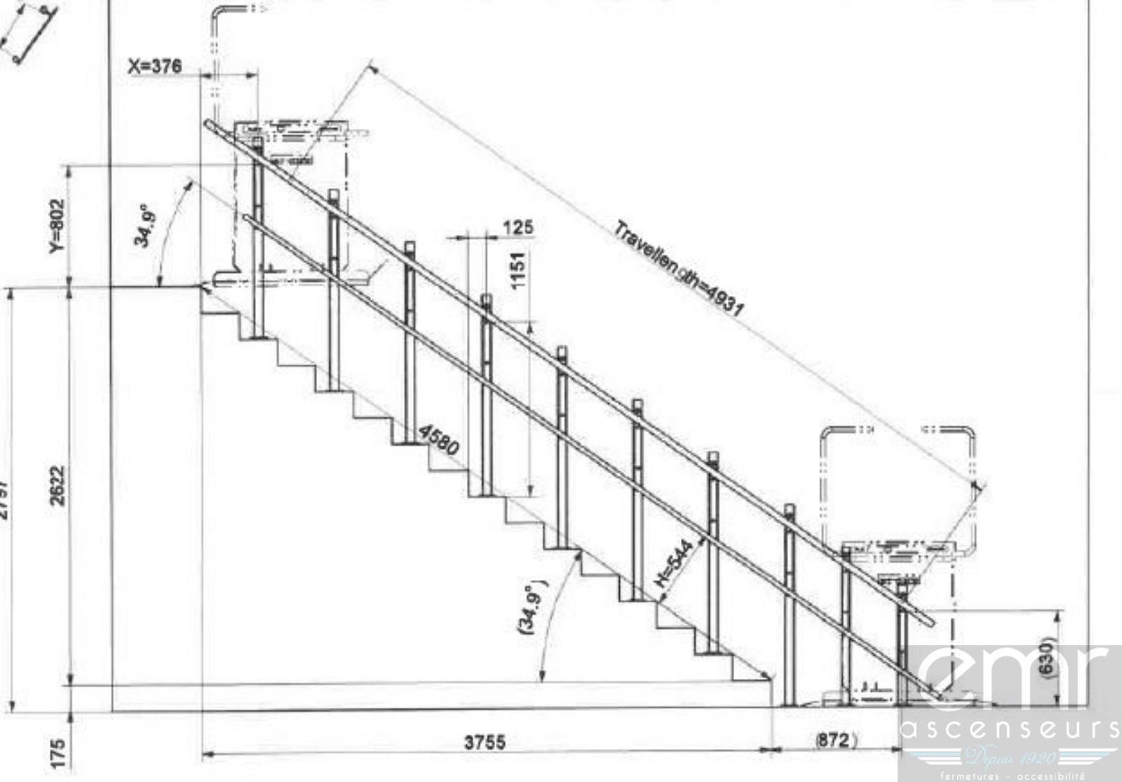 Le descriptif technique vous est présenté ci dessous : - Plateforme pour escalier droit, prêt à l’usage, dim 900 mm X 1250 mm - 2 barrières de sécurité - Touches tactiles ergonomiques - Chargeur intelligent - 4 batteries - Capacité 300 kg - Télécommande verrouillable à fixer ou à encastrer au mur - Gaufrage antidérapant sur la surface de la plateforme - Démarrage et arrêt en douceur - Touche d’appel, bouton d’arrêt d’urgence - Protection anti pincement sur les côtés - Rampe complète et latérale en acier plein Inoxydable - Rampe en acier inoxydable sans salissure ni graisse - Crémaillère ronde en acier inoxydable - Vitesse : 0.11 – 0.15 m/s - Strapontin - Télécommande câblée pour accompagnateur - Avertisseur sonore