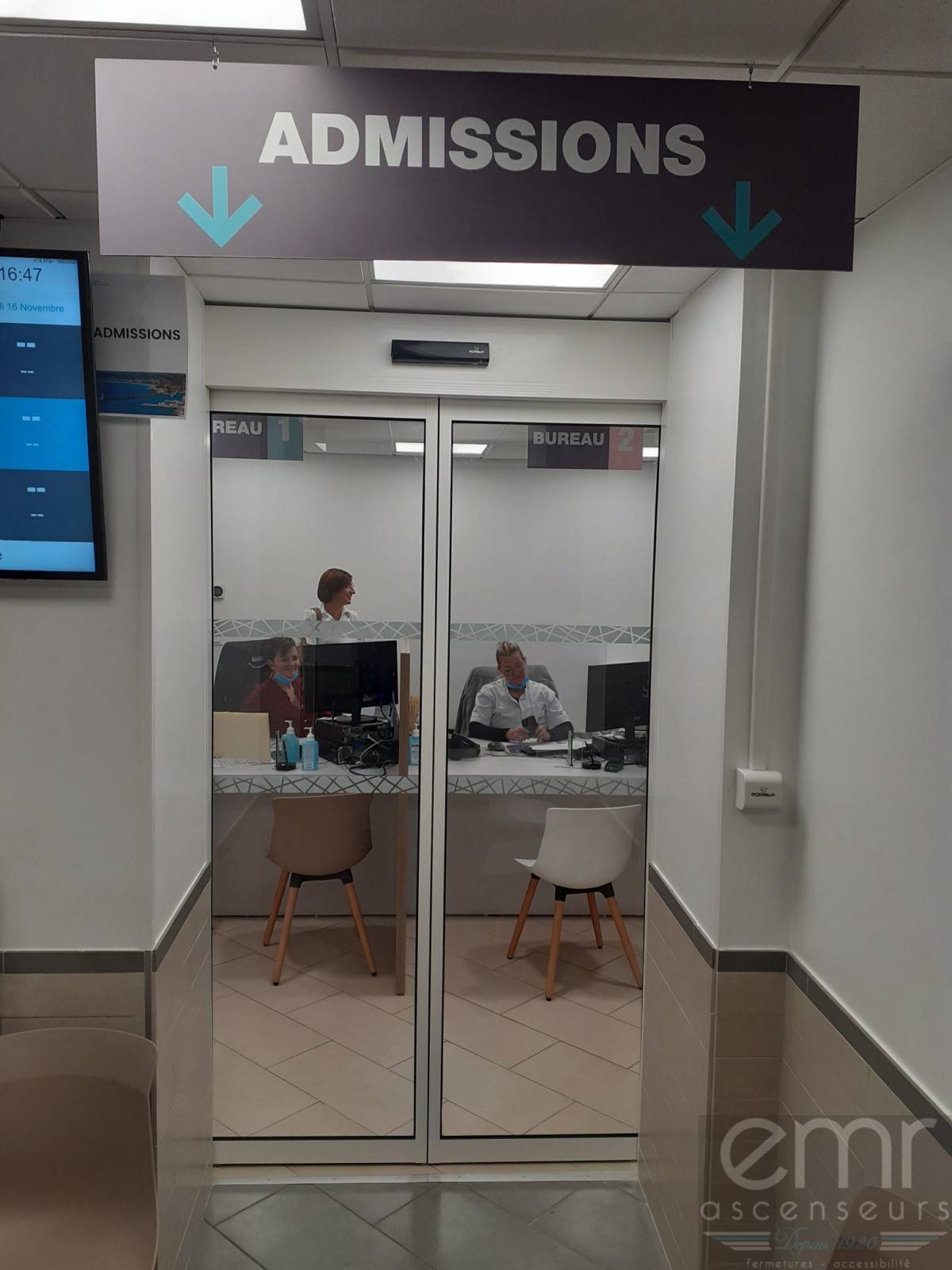 L’équipe de techniciens EMR Ascenseurs et Fermetures sur Nice, Alpes Maritimes, a installé une porte piétonne automatique dans une clinique du centre ville, afin de préserver le bureau des admissions et leur permettre de travailler en toute tranquillité.