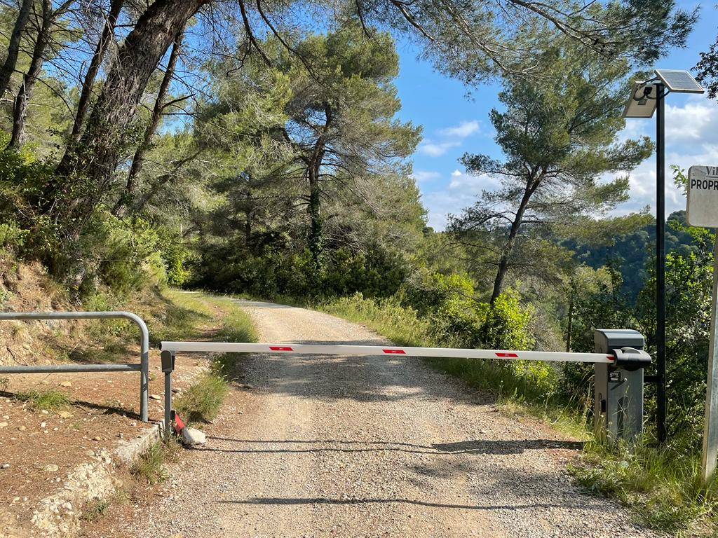EMR ASCENSEURS installe des barrières solaires (avec une batterie qui se change tous les trois ans) sur des chemins peu empruntés, sur les collines de Nice.