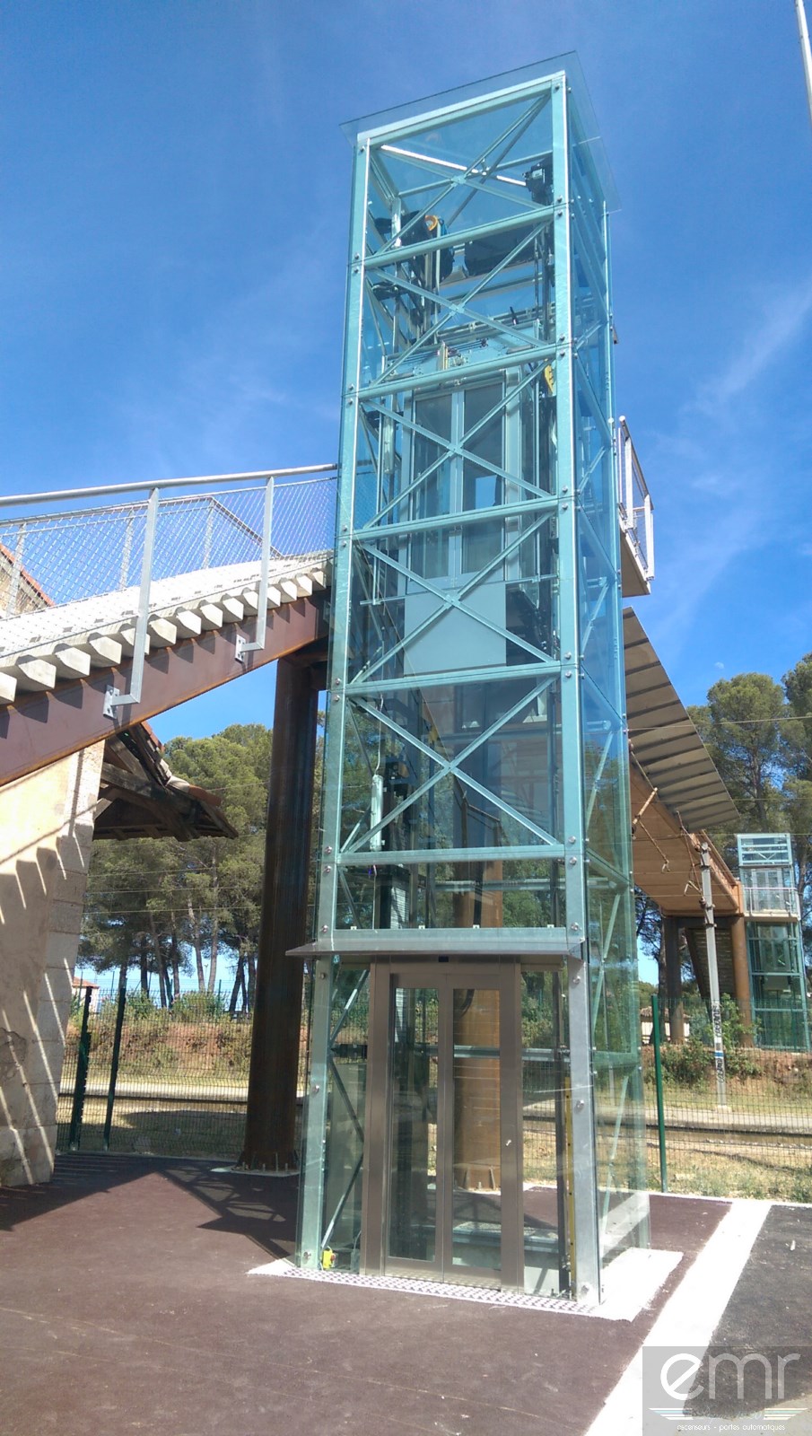 EMR Ascenseurs, votre spécialiste dans l'installation d'ascenseurs, a réalisé pour la Mairie du Cannet des Maures, la création et l’installation de deux ascenseurs sans machinerie avec cabines et pylônes vitrés au parking de la gare 83340 Le Cannet des Maures.