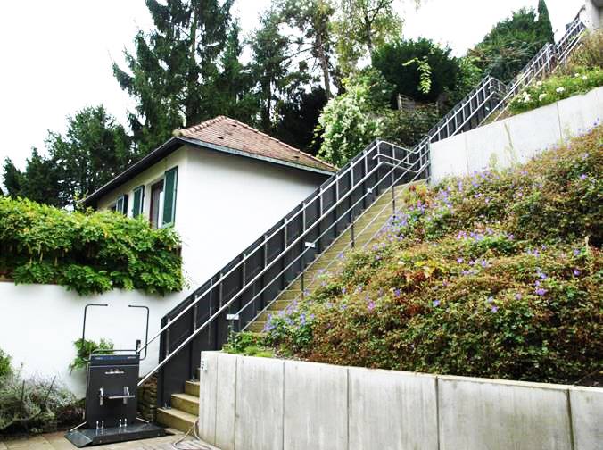 L'installation d'une plateforme élévatrice permet de traiter l’accessibilité des personnes à mobilité réduite à moindre coût, dans les villas, dans des magasins, les établissements recevant du public, hôtels, plages, piscines sur tous types d'escaliers, intérieurs ou extérieurs, la plateforme longe directement le mur ou les escaliers existants avec un rail fabriqué sur mesure.