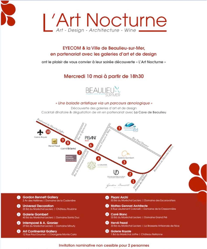 EMR ASCENSEURS, entreprise régionale depuis 1920, a participé à la soirée "ART NOCTURNE" à Beaulieu-sur-Mer le mercredi 10 mai 2017