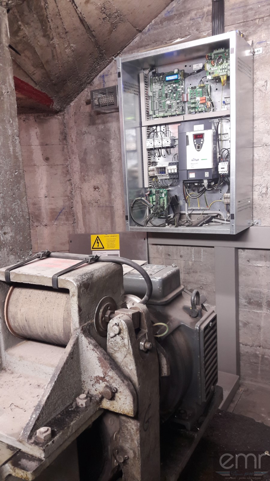 Une armoire à variation de fréquence a été installée par les techniciens EMR afin d’offrir un confort optimum aux usagers, de supprimer les pannes aléatoires ainsi que les à-coups venant de l’ancienne armoire de manœuvre d’origine.