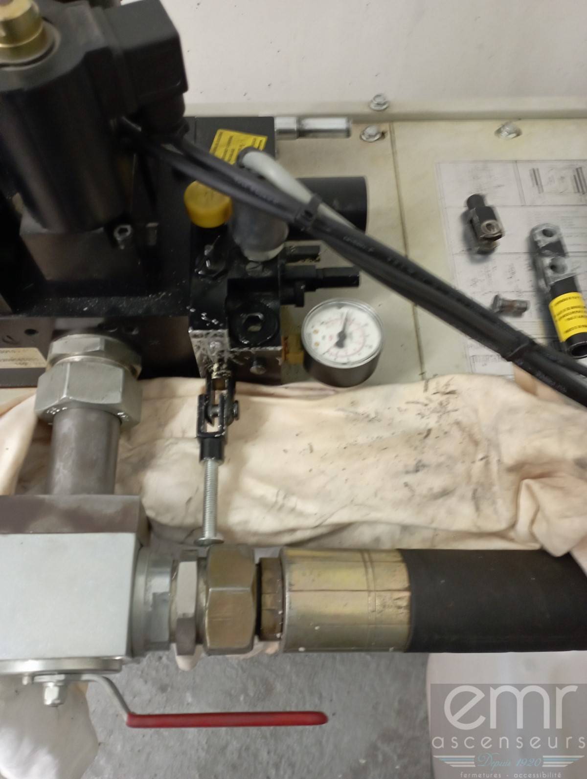 Vous pourrez voir une installation sur laquelle le technicien a remplacé une partie du distributeur hydraulique.