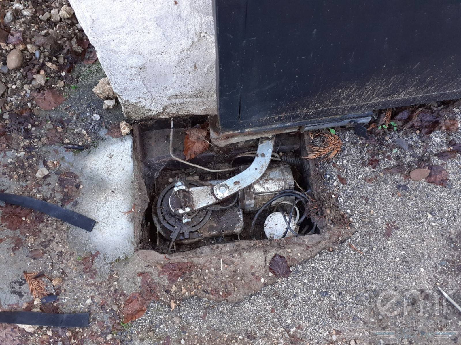 Un technicien EMR est intervenu et a remis le portail en fonction en démontant l’ancien caisson avec son moteur et en le remplaçant en lieu et place.