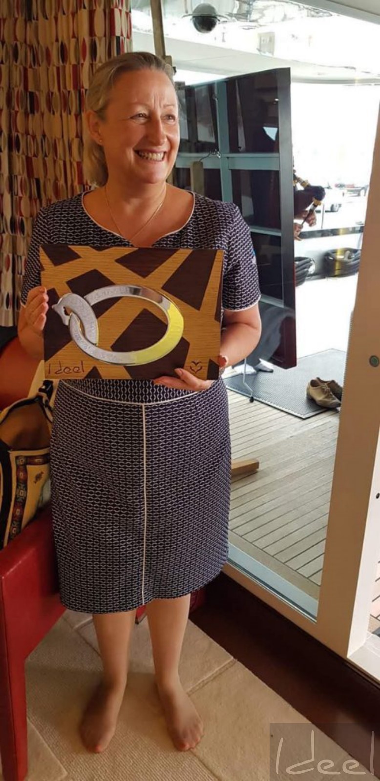 Premier symbole des Yachts du Coeur, représenté par une sculpture réalisée par Sylvie WOHLGEMUTH, IDEEL, illustrant l'union du ciel et de la terre, un anneau sur une dalle qui attend le yacht, messager de la mer qui apporte l'espérance aux démunis!